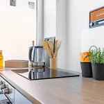 Ervaar ultiem comfort in de keuken van Sms-Homes I Auszeit Am Klinkerberg appartementen, voorzien van een waterkoker, een koelkast en een oven. Het is gesitueerd op 150 meter afstand Volkhartstrasse bushalte.